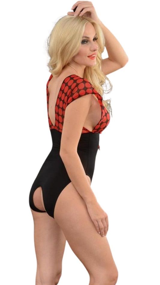 Женское боди с верхом в крупный горох.
