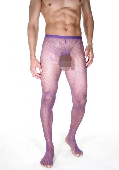 Колготы для мужчин, из сетки среднего размера, с полносьтью открытыми ягодицами и вырезом в районе гениталий.