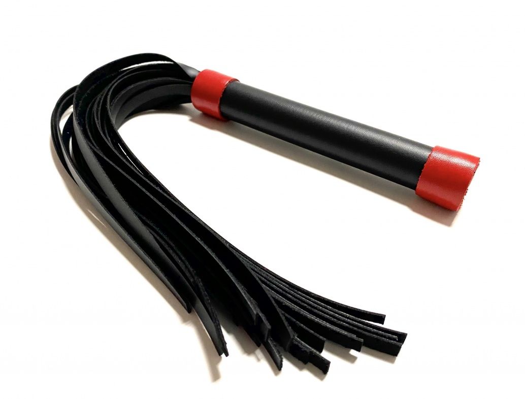 Стильная лаконичная плеть, выполненная из чёрной матовой эко-кожи. Рукоятка декорирована ярко-красными полосками, что добавляет контраста. Эта плеть поможет разнообразить вашу БДСМ игру и подарит новые ощущения. Экономичный, экологичный и красивый аксессуар!