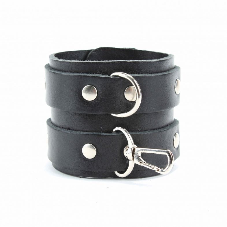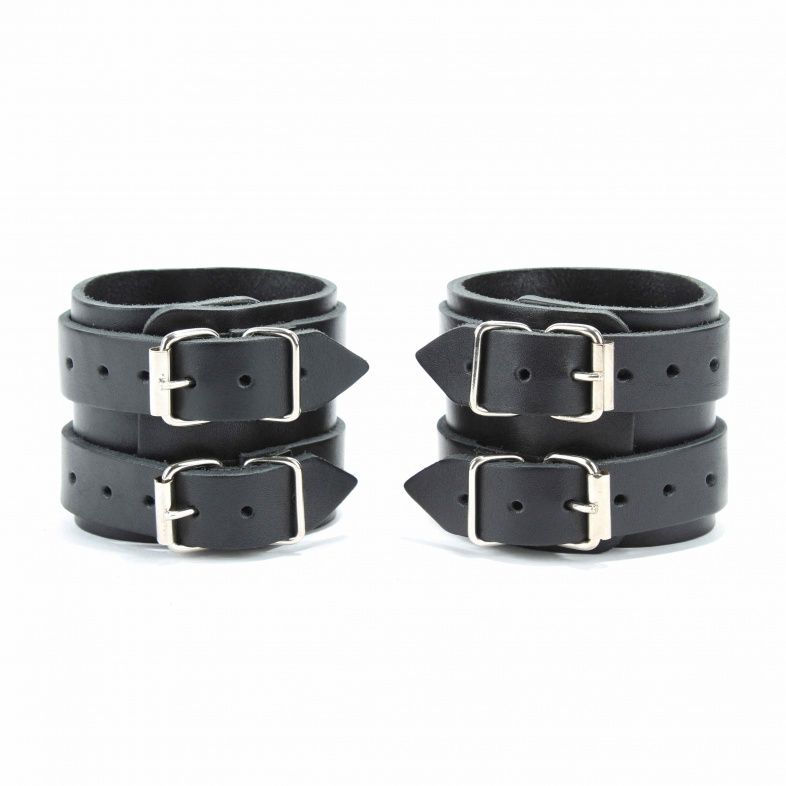 Наручники широкие с двумя ремешками. Изготавливаются из натуральной кожи, металла и полимерных материалов. При изготовлении использована фурнитура с никелевым покрытием.