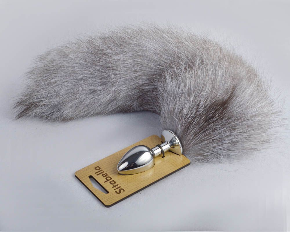 Анальная хромированная пробка с натуральным лисьим хвостом. Цвет - пятьдесят оттенков серого. Рабочая длина - 4 см., диаметр - 2,8 см. Длина хвоста - 40 см.
