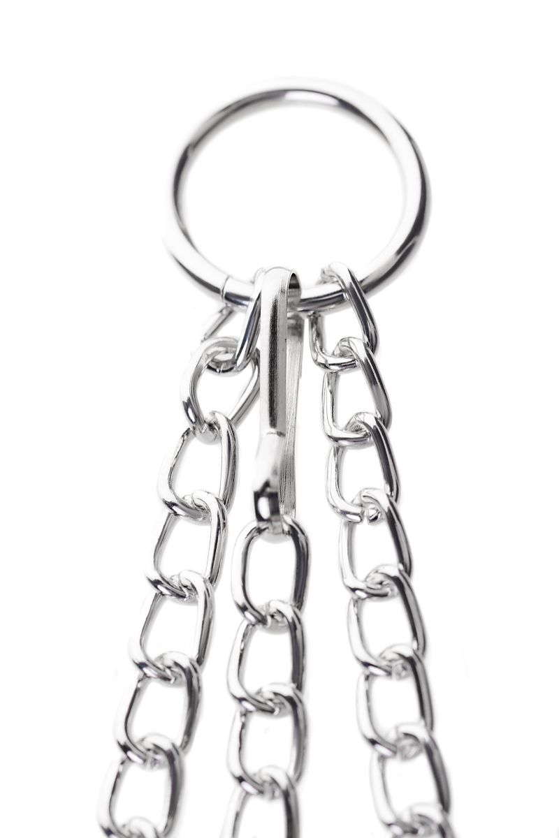 Мужская версия зажимов для воздействия на соски. Конструкция с пружинным механизмов - один из самых жестких вариантов. Дополнительное ограничение свободы обеспечивает мягкое кольцо на пенис. Длина сцепки - 48,5 см. Длина зажимов - 9 см. Диаметр кольца - 3,5 см.
