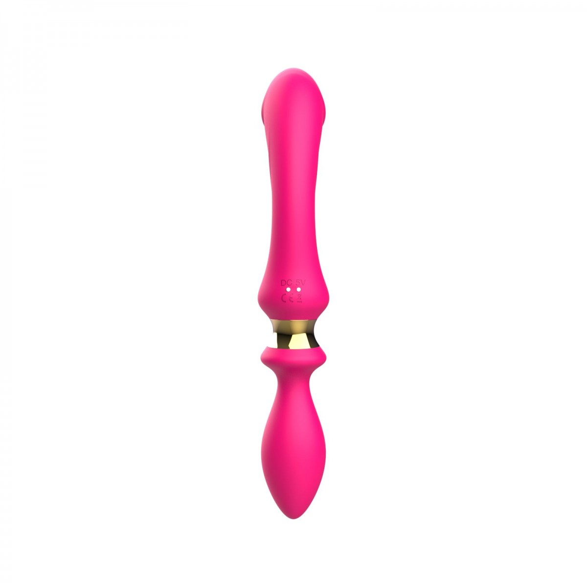 Розовый двусторонний вибромассажёр. Может использоваться обоими партнёрами - для вагинальной или анальной стимуляции. Имеет 10 режимов вибрации. Рабочая длина большого отростка - 12,8 см, диаметр - 3,8 см. Рабочая длина малого отростка - 9,1 см, диаметр - 3,7 см.