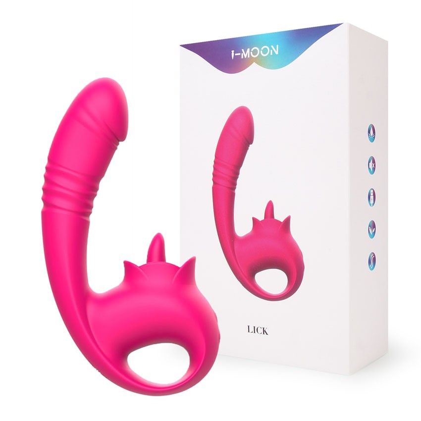 Розовый изогнутый вибратор с фрикциями. 10 режимов возвратно-поступательных движений, 10 режимов движения язычка. Рабочая длина - 13,3 см.